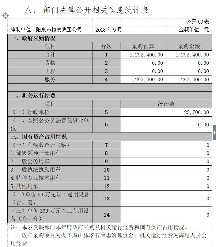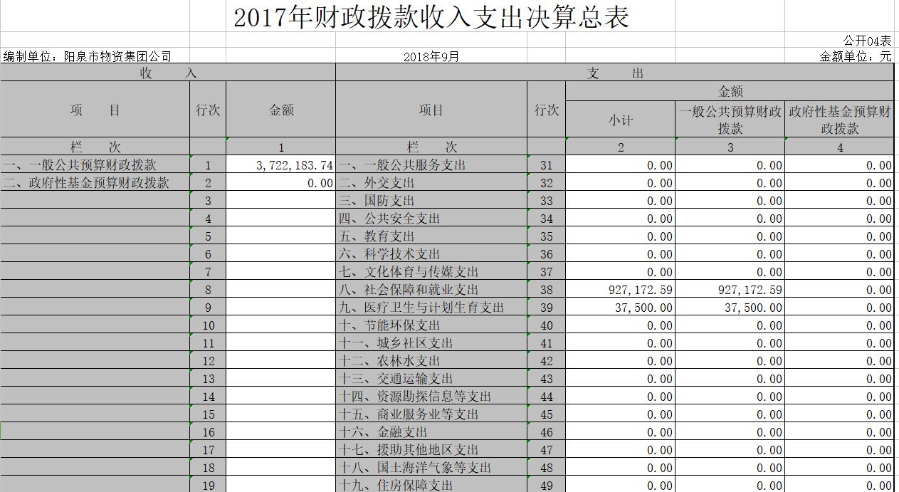 陽泉市物資集團(tuán)公司2017年部門單位決算信息公開
