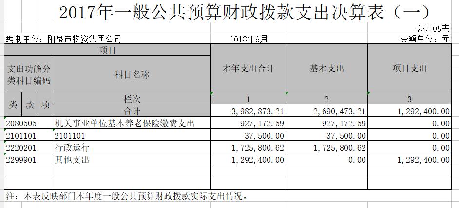 五、關(guān)于陽泉市物資集團(tuán)公司2017年度一般公共預(yù)算財政撥款支出決算情況說明