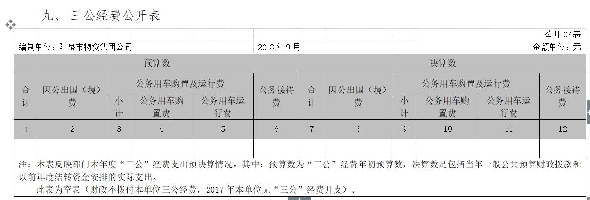 七、關(guān)于陽泉市物資集團(tuán)公司2017年度一般公共預(yù)算財政撥款“三公”經(jīng)費支出決算情況說明